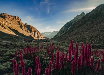The trail to Balu Ka Ghera is scenic, with meadows, rivers, and glimpses of snow-capped mountains. Reach Balu Ka Ghera, a vast plain surrounded by peaks, for an overnight stay in tents.