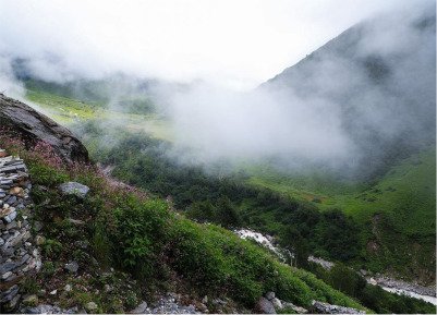 After breakfast, the trek to Ghangaria begins. The trail follows the River Alaknanda and crosses the villages of Pulna and Bhyundar. It's a gradual ascent, passing through lush green forests, waterfalls, and serene landscapes. Ghangaria, a small settlement, serves as the base camp for both Valley of Flowers and Hemkund Sahib. Overnight stay in Ghangaria.